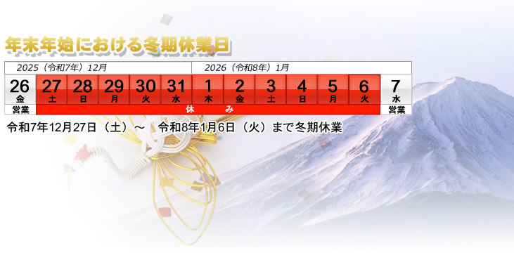 休業期間中のウェブサイトからのお問合せに関しましては、1月7日(水)から順次対応とさせて頂きます。